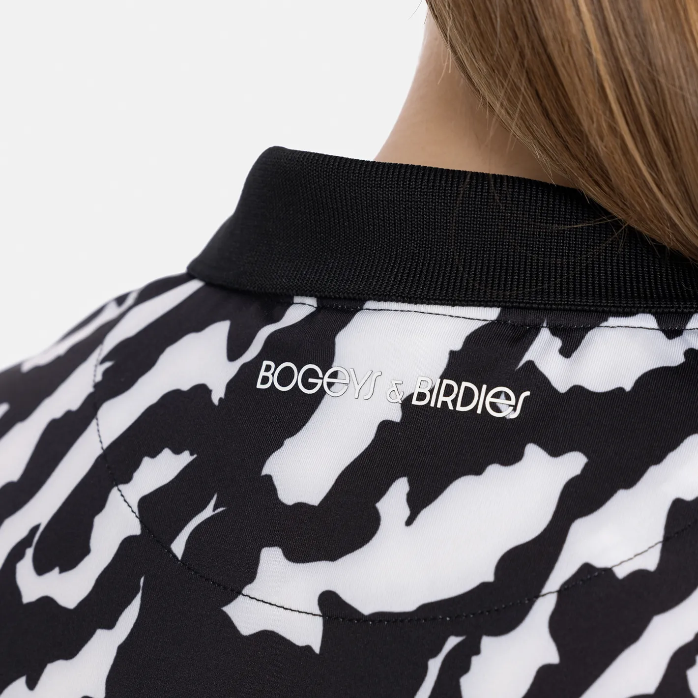 Jr Tech Hidden Button Pique AOP Svart Vit-Bogeys & Birdies New
