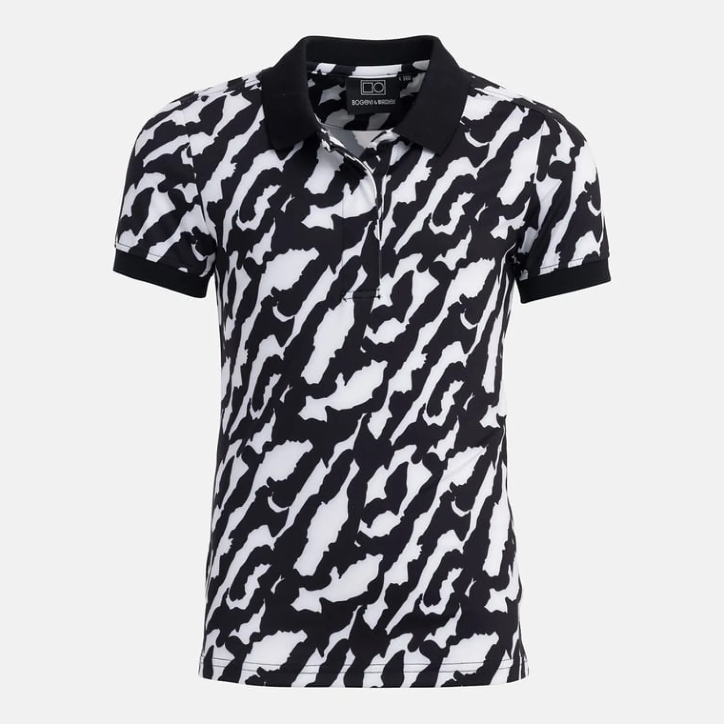 Jr Tech Hidden Button Pique AOP Svart Vit-Bogeys & Birdies New